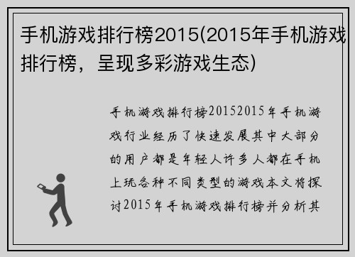 阅读世界之外 - 探索游戏的无限可能 引言随着技术的不断进步,游戏正在以惊人的速度发展。无论是电子游戏还是桌面游戏,都可以带我们进入一个完全不同的世界,让我们探索自己从未体验过的东西。游戏的世界之外就是这...